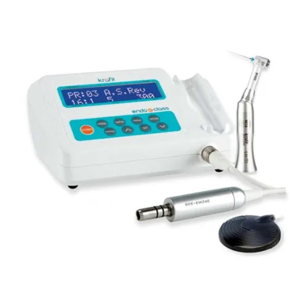 Marathon Endomotor E Class by Saeyang is an endo motor used in conjunction with rotary endodontic files in the biomechanical preparation phase of endodontic therapy. It is an innovative endo rotory motor that offers quiet and comfortable performance. The endo handpiece has a push type miniature head that makes replacement of rotary files easy and increases the visibility of the tooth being operated. The auto stop reverses feature of the rotary endo motor ensure that once overloaded, the motor stops running in the usual direction and starts running in the opposite direction until the load is solved. Once the load is solved the motor starts running in the forward direction. The E type motor is compatible with micro motor handpieces in compliance with ISO standards.
